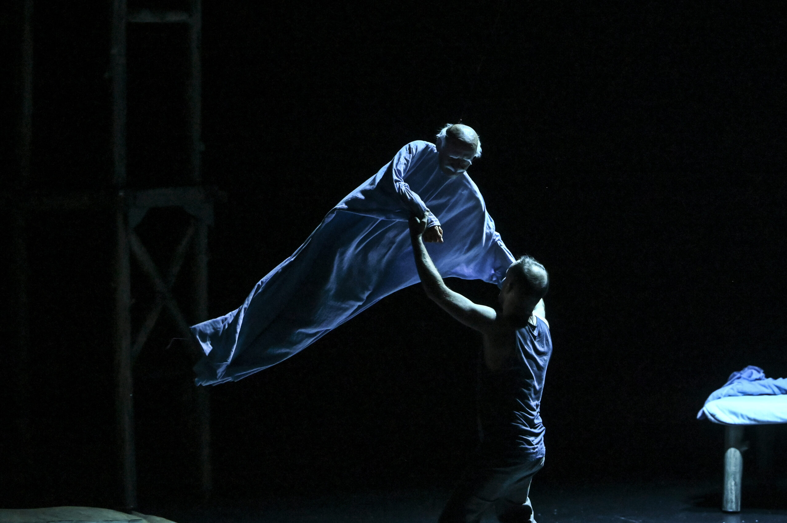 Un homme se rend matin et soir sur la plage pour contempler l’océan. Chaque jour, le spectacle se répète, toujours semblable et pourtant différent. Cet homme a quarante ans, il est accompagné de son jeune fils, mais aussi de son père qui vieillit. Dans ce miroir de la vie, à la croisée des chemins, le vertige du temps est palpable plus que jamais. Matin et soir, qui tire son titre du roman éponyme de Jon Fosse, tel un point de départ qui a nourri le travail d’adaptation, interroge notre mémoire, la relation père-fils, la manière dont on comprend tardivement ce qu’on pensait savoir jeune et aborde avec sensibilité toutes les manières d’être un homme aujourd’hui. La force et la fascination de ce spectacle résident dans la présence au plateau de nombreuses marionnettes, réalistes et de taille humaine, représentant sur une période de quinze ans les fantasmes et les fantômes, en donnant forme aux souvenirs. Grâce à un important travail sur la vidéo, nous plongeons dans cet océan, à la lisière des tracas du quotidien et de l’immensité de la vie.
